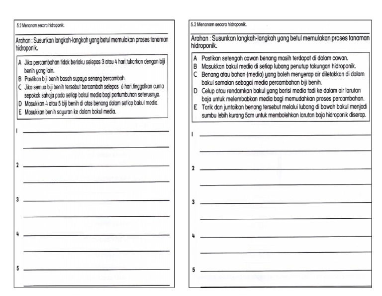Ficha De Hidroponik Para Tahun 6